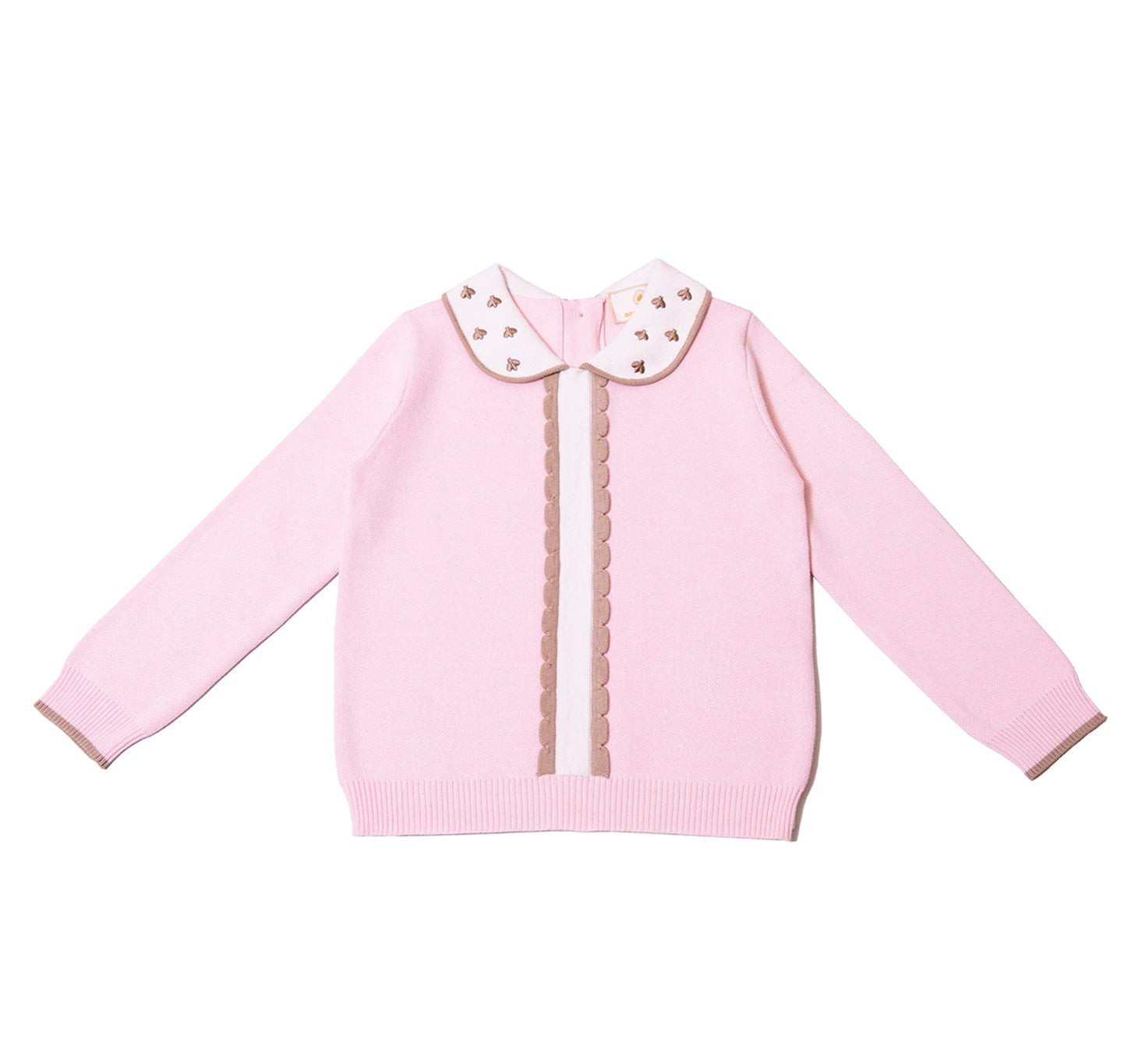Mjuk och behaglig runt halsen är denna varsamt rundade Peter Pan-krage utformad för att ligga slätt mot huden. Den diskreta BEEMONDO-logotypen i brodyr tillför en subtil detalj att lita på – vacker, lugn och skapad för att kännas bra hela dagen.